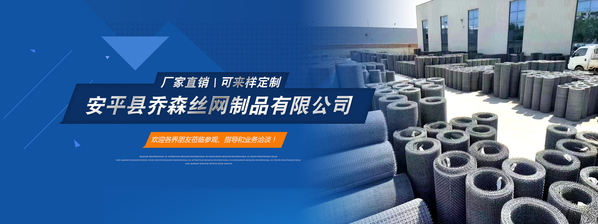 安平縣喬森絲網制品有限公司主營產品:篩網、金屬裝飾網、沖孔網板、防滑板和軋花網。常年現貨供應45號黑鋼絲編織篩網、熱鍍鋅鋼絲篩網、304不銹鋼篩網和冷鍍鋅鐵絲網,加工定做耐磨65號錳鋼絲篩網、菱形孔防堵篩網、養殖用長方孔鐵絲網、金屬裝飾網、盤條 礦篩網等各種鋼絲篩網和建筑用鐵絲網片,歡迎新老客戶前來咨詢洽談合作。